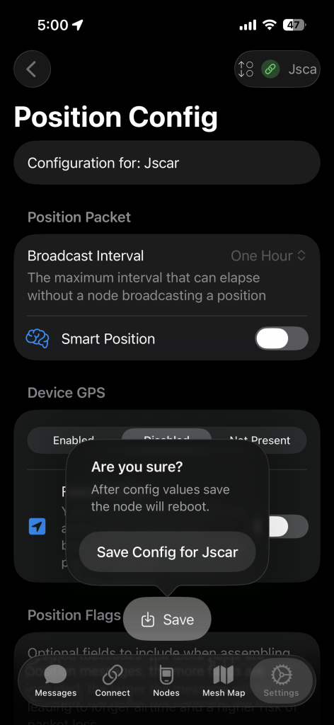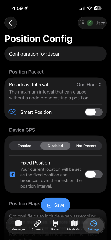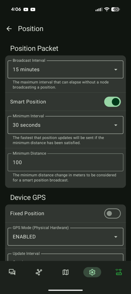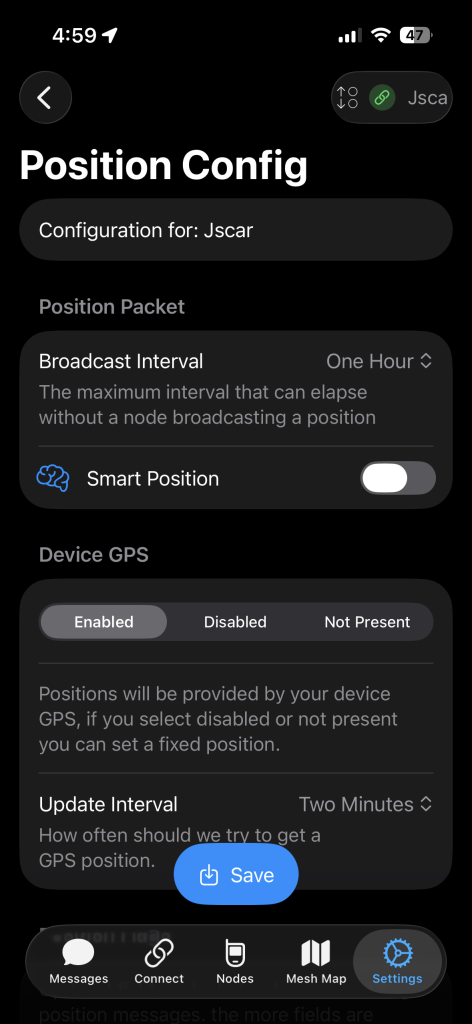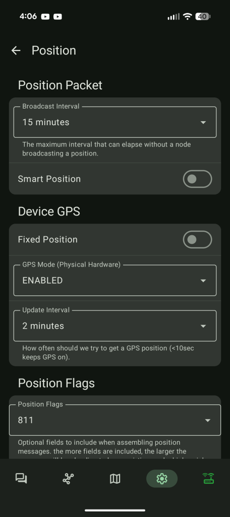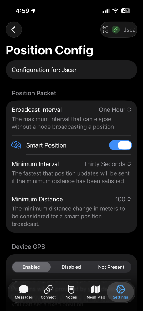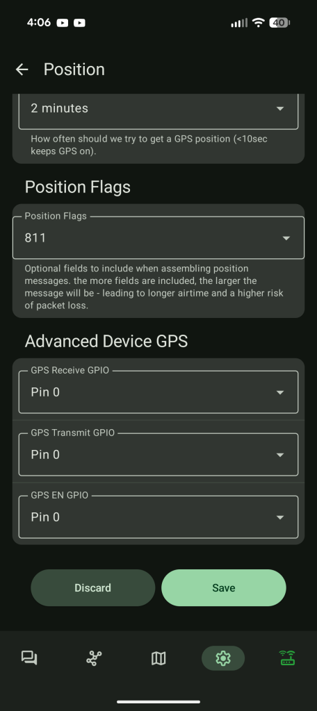 If Your Meshtastic Device Has A Built In GPS You Might Have To Turn It Off Under the “Device GPS”